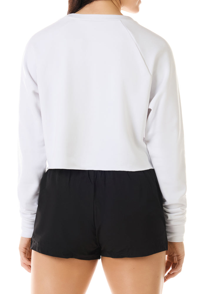 Effortlessly iconic? Must be the Rebel Level™ Cropped Pullover in White! This pullover brings polished comfort to your all-day lineup. The fuchsia crystal-fill logo pops against the cozy white Fleeceluxe fabric for a luxe finish that elevates every look, from your fave Rebel bottoms to your fave jeans!