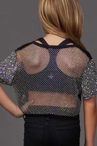 Mesh Crystal Couture Rebel Against Bullying Cropped Tee - Special Order