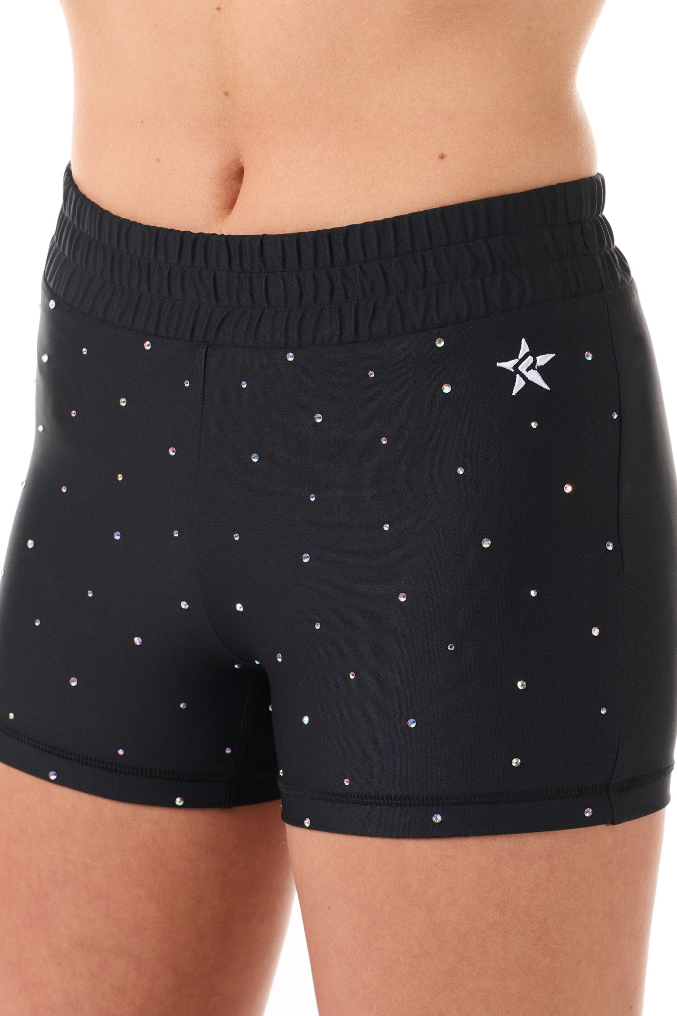 Your favorite compression shorts have a new cinched twist! These super cute Cinched Compressions shorts have a flattering cinched elasticized waistband for added comfort, and of course a sparkly crystal scatter across the front for added shine!