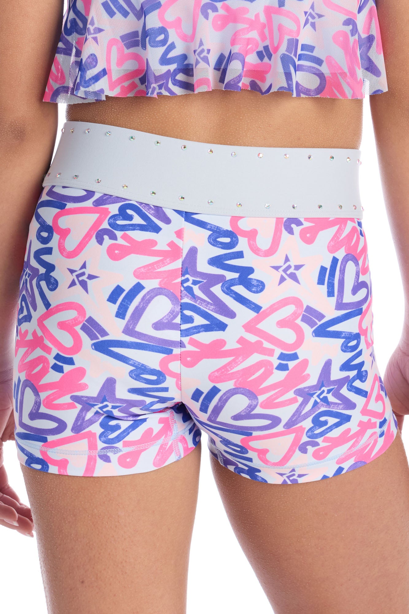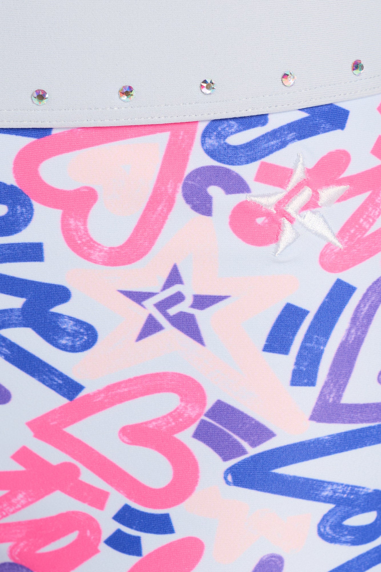 • AB Opalescent crystal accent lines on waistband