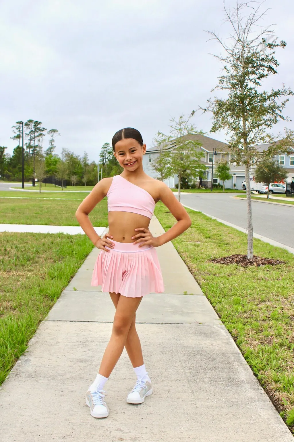 My daughter loves this skirt for practice. The pleats are adorable, the waistband stays in place, and the built-in shorts make it super comfortable and easy to move in. True to size and great quality.