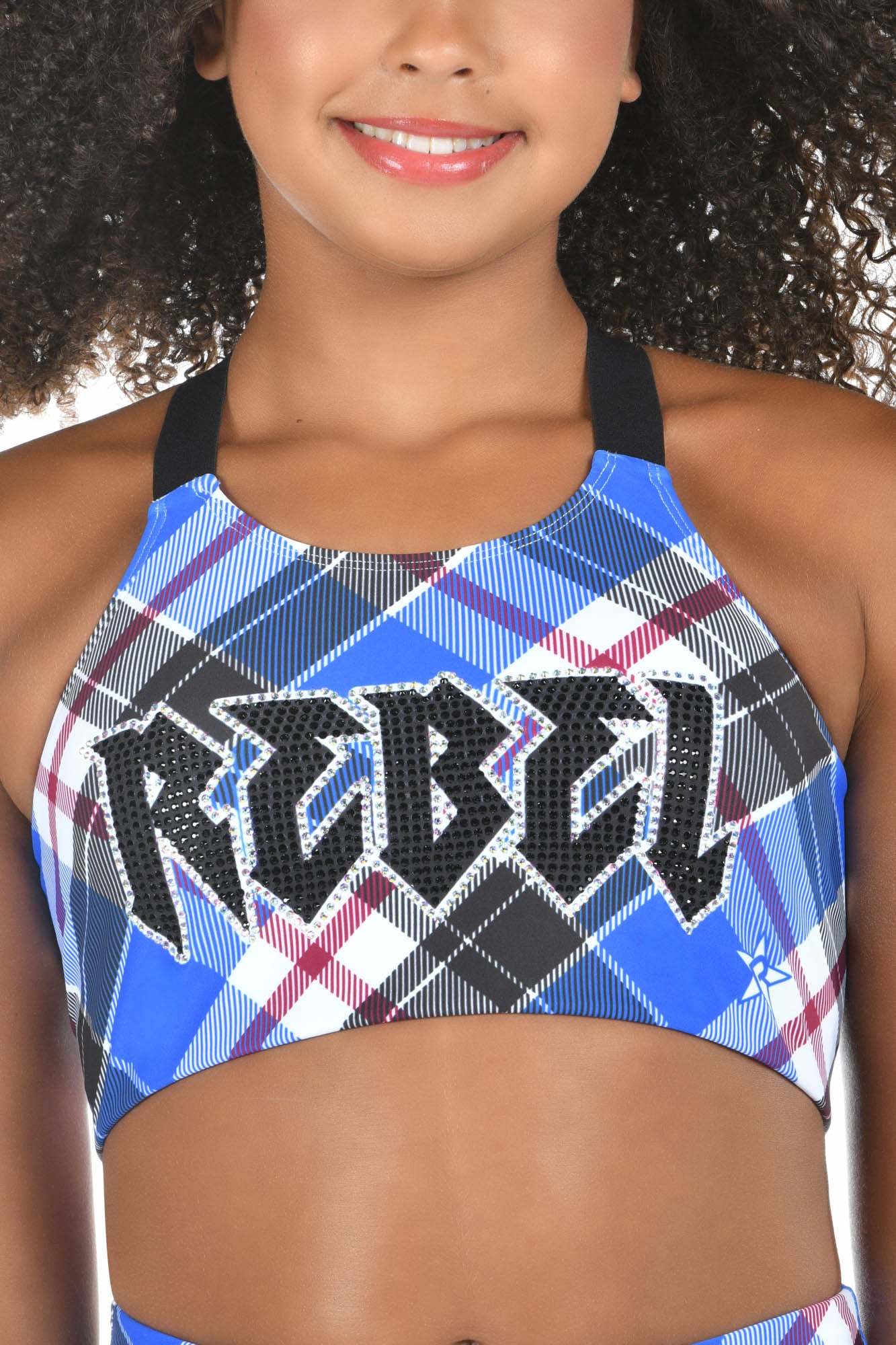 Show off your spirit with major Plaiditude! This Royal Blue Sports Bra is equal parts classic and cool, featuring sleek criss-cross straps and a crystal-filled Rebel logo for that perfect pop of sparkle.
