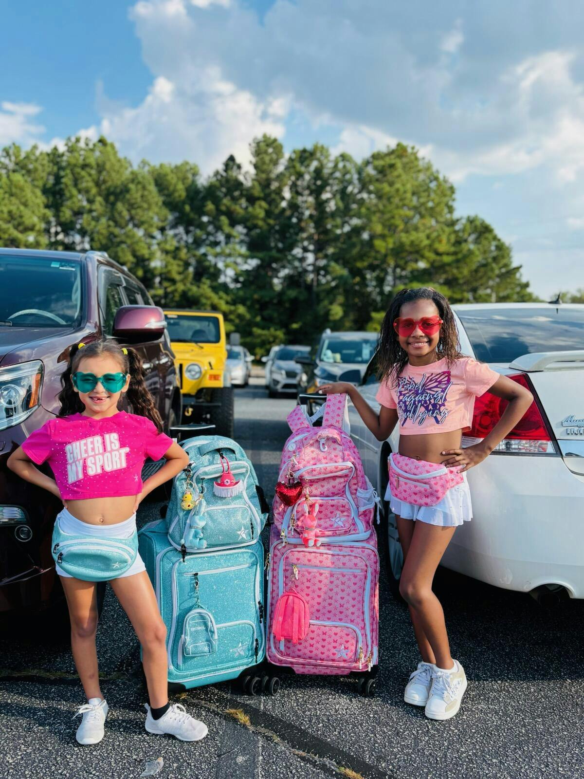 This is so very cute and spacious. I love that it has an extra compartment where I can put things in in the front. I love the sparkly glitter look and how it stands out in a crowd. The heart and Rebel star design looks so great on this. I had to get this to go with my luggage and dream bag!