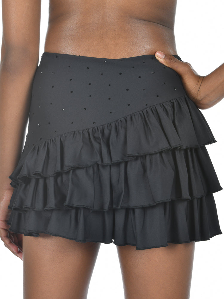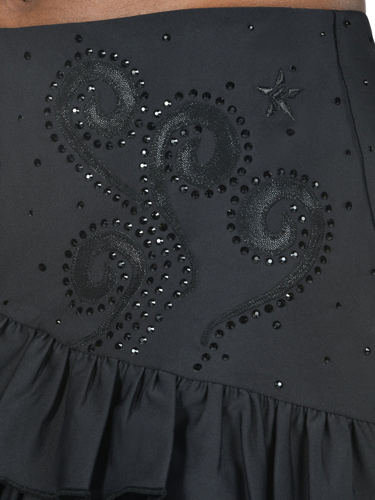 Make every move magical in the Flying Solo Skirt in Spellbound! With asymmetrical tiered flounces, appliqué swirls, and a sparkly crystal scatter that catches the light, this high-rise skirt is all about fierce glamour.