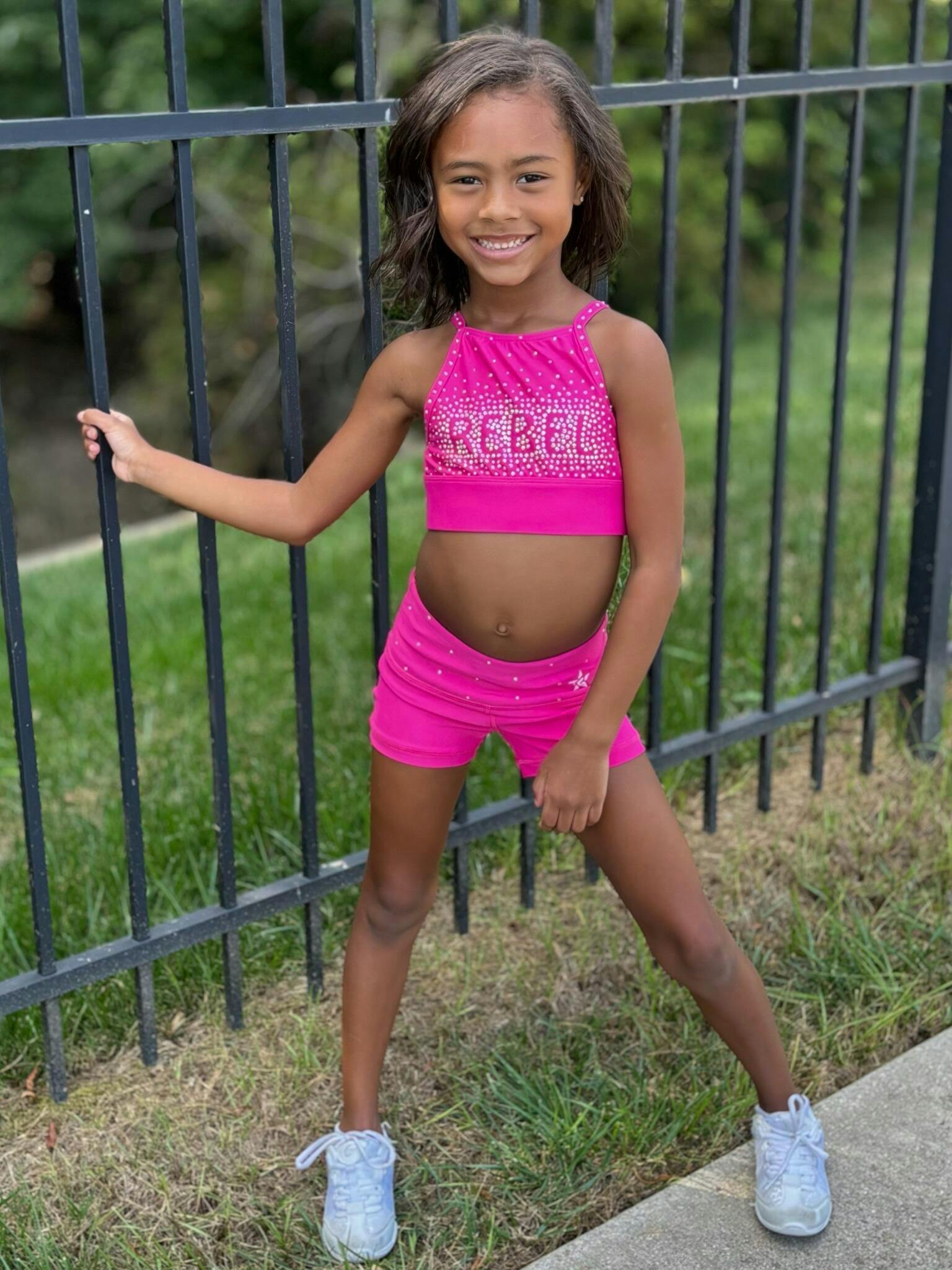 Sparkle and shine in the Gilmore Sports Bra. Featuring a sleek high neckline and unique crystal back, this all-way stretch top is the perfect go-to for at the gym. Pair with the coordinating Mesh Overlay Skirt to complete the stylish set.