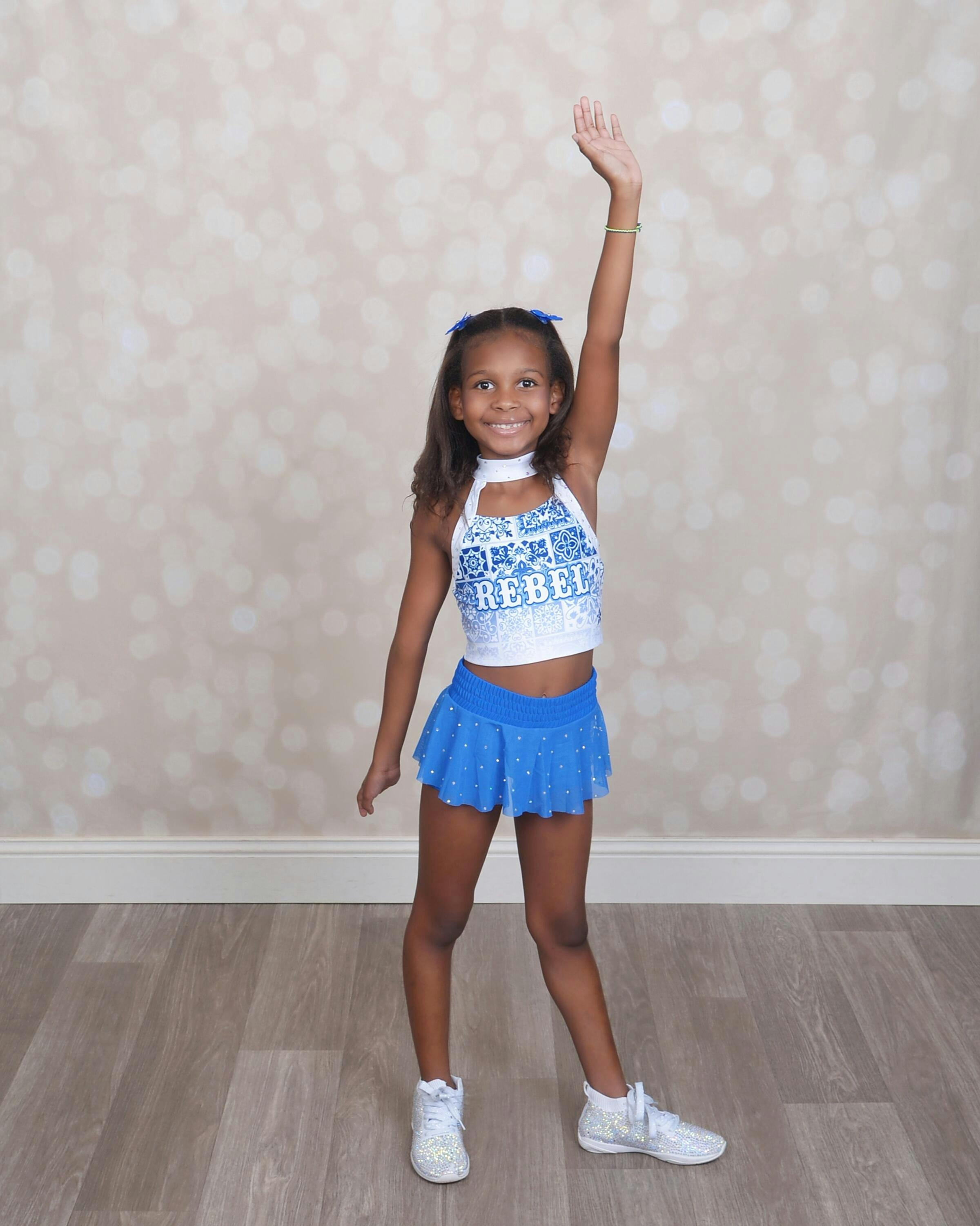 Inspired by the stunning tiles of Lisbon, meet the Oasis High Neck Sports Bra! This gorgeous sports bra has a flattering high-neck choker and features sparkly crystals on white accents. Be sure to pick up the coordinating skirt or compressions shorts for a full look!