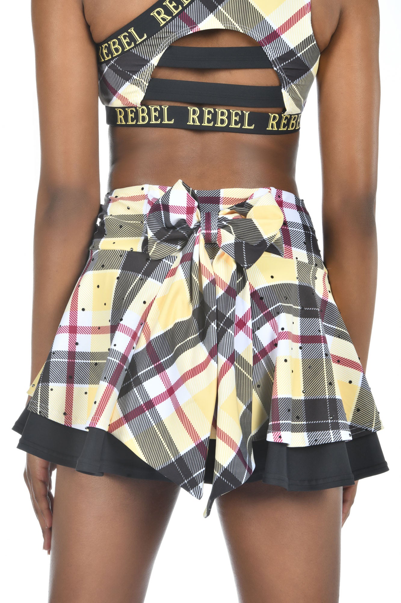Bring the glam energy in the Vibe Check Skirt in Banana Yellow! With its legendary flouncy layers, iconic waistband, and an adorable back bow, this skirt is all about fun, flair, and fearless movement.